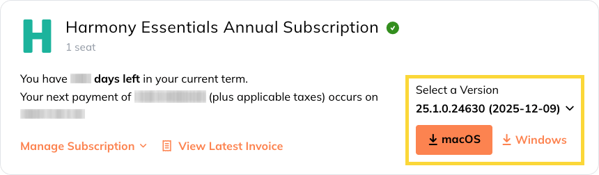You can also access this page from the user dropdown menu at the top of the page. - On the right side of your subscription panel, click the download link that matches your operating system.