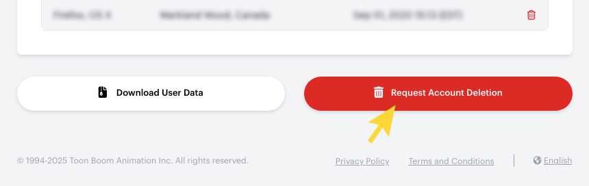 You can delete your Toon Boom account at any time. Please take note of the following before you proceed: