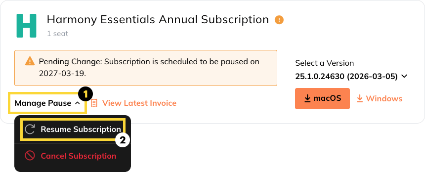- Click Resume Subscription.