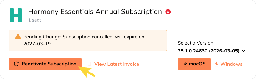 - In the subscription panel, click Reactivate Subscription.