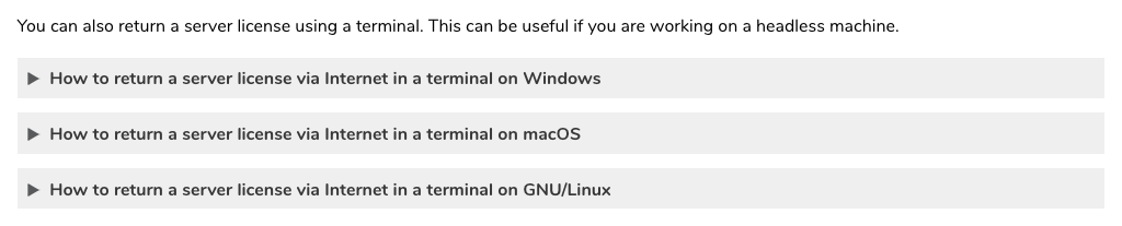 - How do I return a license via the internet?
