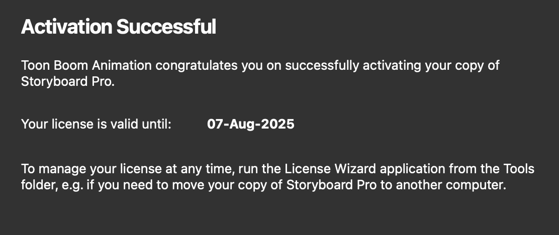 - The Toon Boom Activation Wizard/License Wizard will appear: