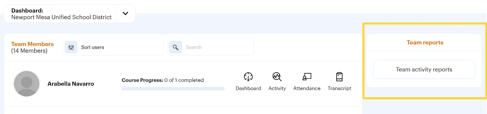 - After logging in, locate the Team Reports section on the right side of your home page.