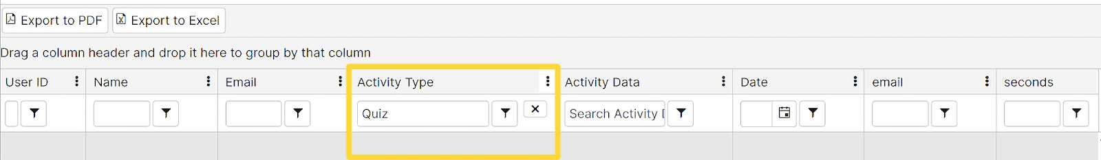 - Under the "Activity Type" column, type ‘Quiz’ to get your results.