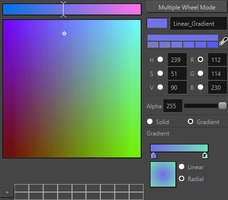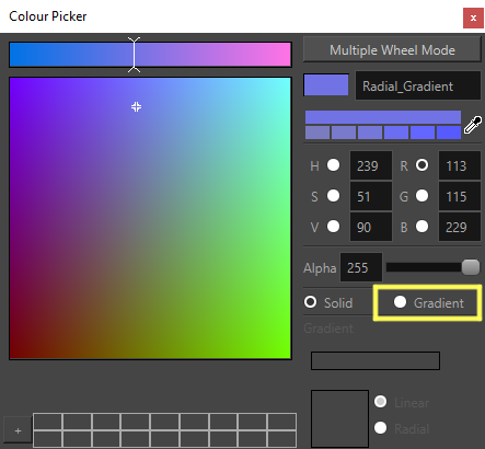 - Click underneath the slider to add a new colour to the gradient. The new key will be created in the same colour of a previously selected key:
