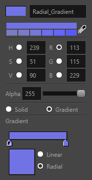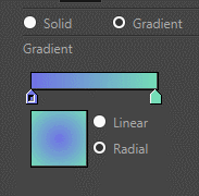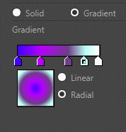- The distribution of the gradient colours can be edited by moving the slider keys. The slider key on the left of the slider represents the centre colour, and the slider key on the right of the slider represents the outer colour: