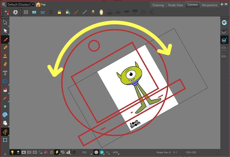 - In the Drawing or Camera view, right-click and select Drawing Tools > Rotate View