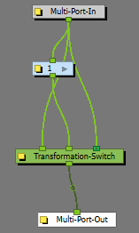 - Inside the Deformation group, the Transformation Switch will automatically be added and connected properly.