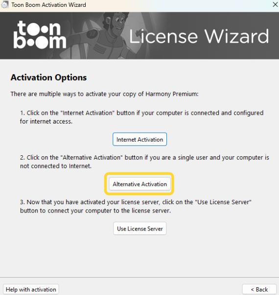 Launch the Toon Boom Activation Wizard (see Step 1 for instructions).