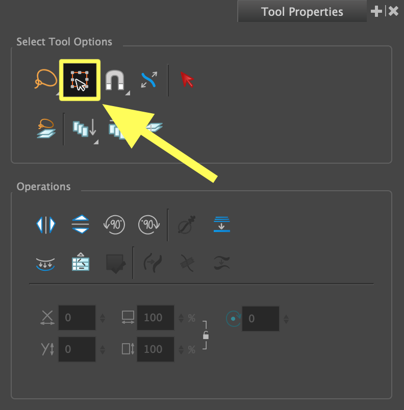 1. In the Tools toolbar, select either the Transform tool, or the Selection tool.