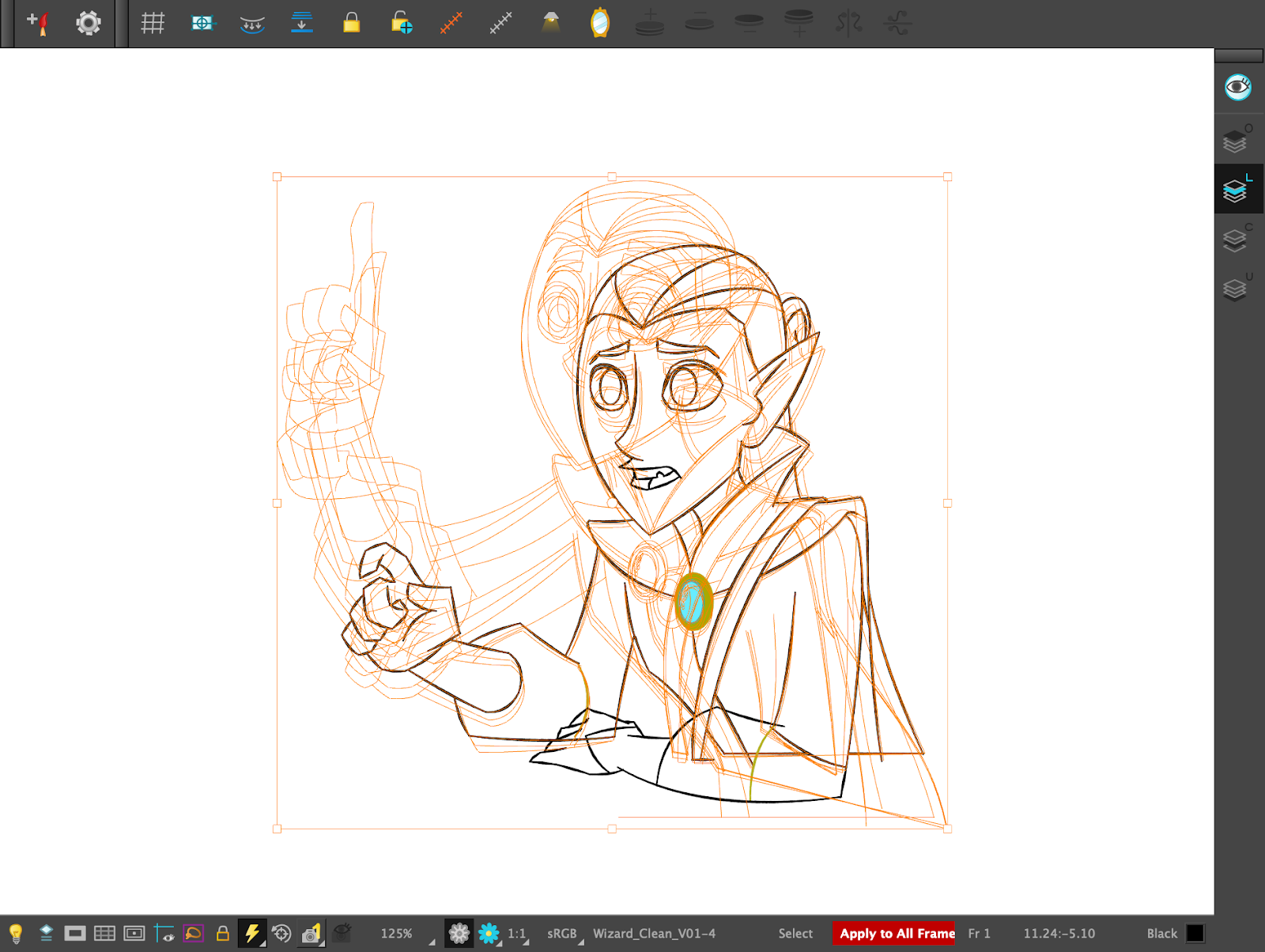 - In the Timeline or Xsheet view, select the layer you want to edit artwork on.