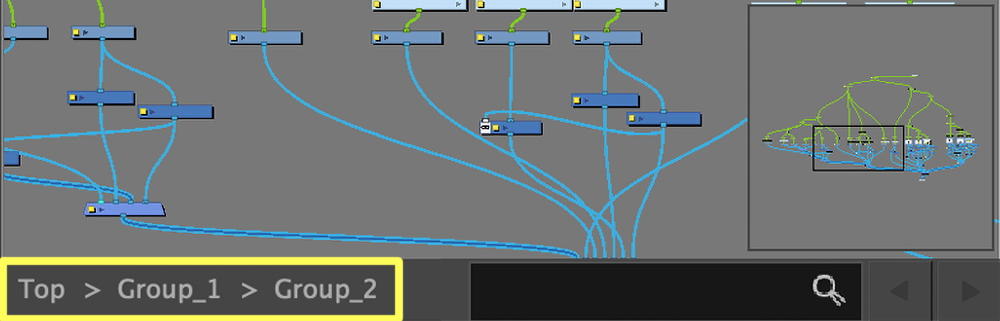 - In the bottom left corner of the Node view, select a level in the path to take you to another group up or down. The Top level will take you outside any and all groups.