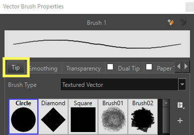 - Go to the Tools Properties view. In the Vector Brush Properties section, select the Show Extended Properties button.