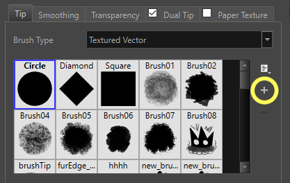 - On the right side of the brush tip preview, click on the Add
