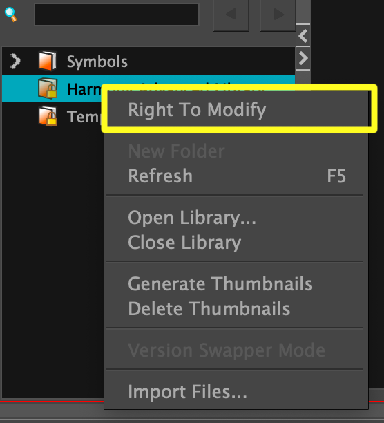 | TIP: It is good practice to lock the library folder again after creating templates as this can prevent unwanted modifications of saved elements. To do this, right click the folder again and select Right to Modify. |