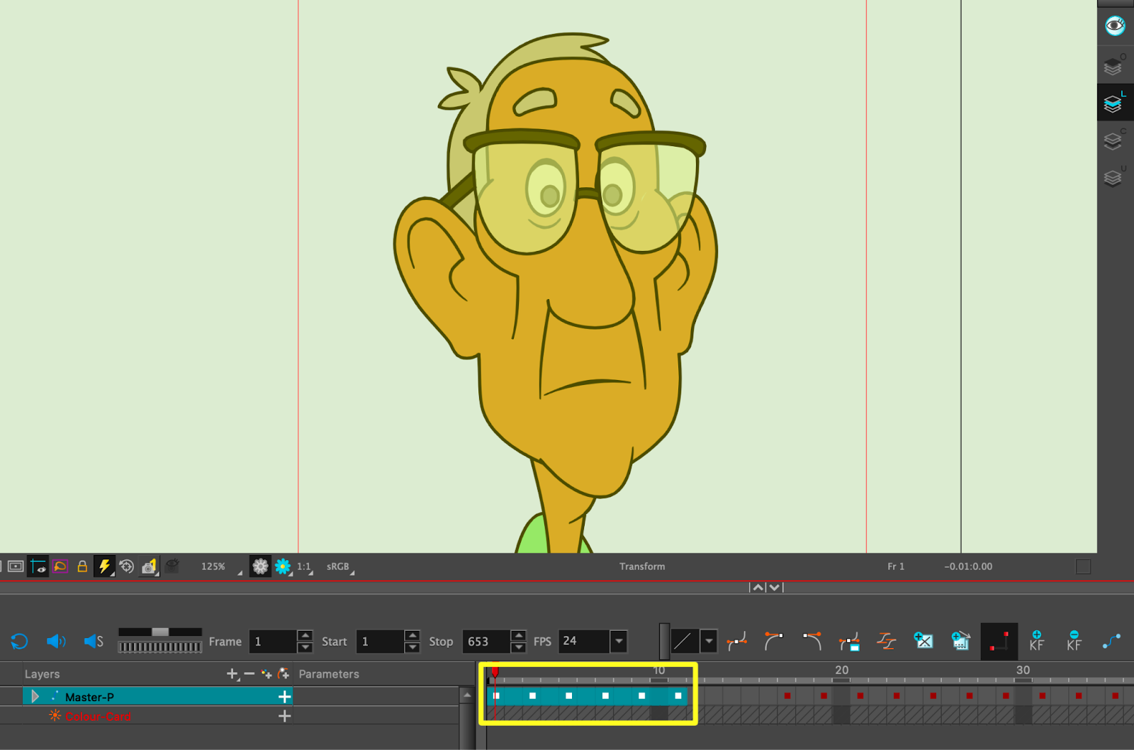 - If the animation exists on only part of the body, this would be the topmost peg that contains the animation information, like a Head master peg, or an Arm master peg. You will need to open up the timeline to this section.