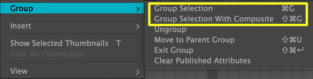 - If your rig does not have its own composite, choose Group > Group Selection with Composite.