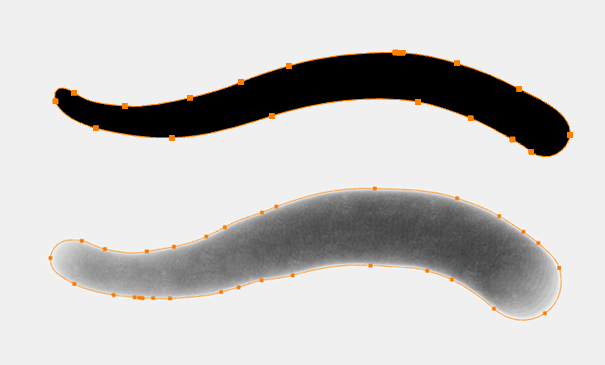 When using the Brush tool on a vector layer, a vector or hybrid brush line will be characterised by an envelope with points surrounding the stroke. Points on this envelope can be edited and manipulated to create changes in the shape. Colours can also easily be changed after the line is drawn.