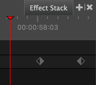 - In the right-hand side of the Effect Stack view, scrub the playhead to move across the length of the clip. As you scrub in the Effect Stack, you will also see the playhead move in the Timeline view.