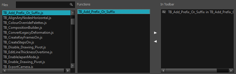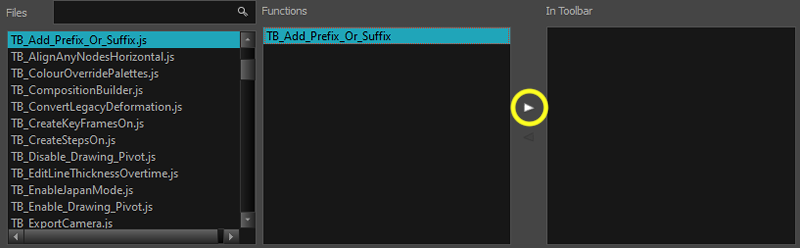- Select the function you wish to add, then click white arrow between the Functions and In Toolbar lists.