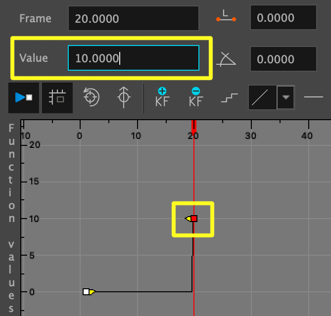 - To change the value of the parameter on a specific frame, select the keyframe and change the number in the Value field.