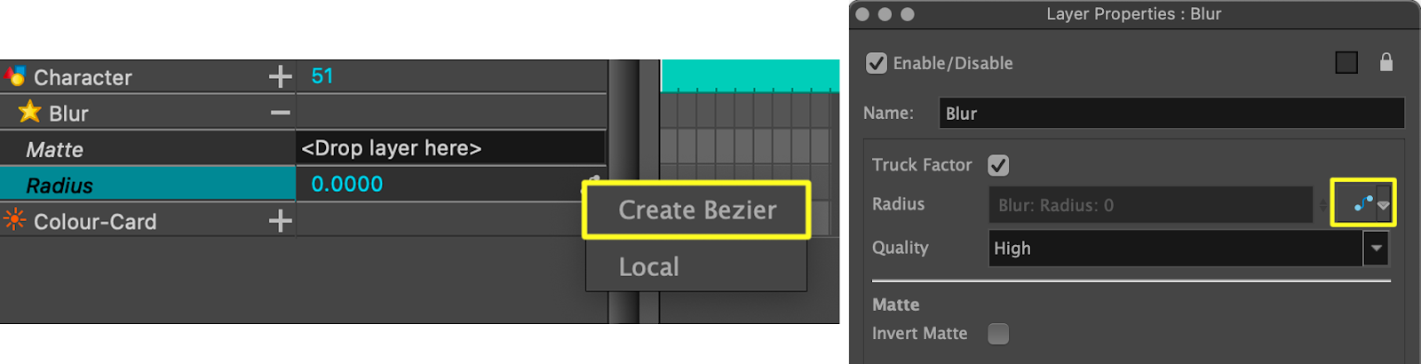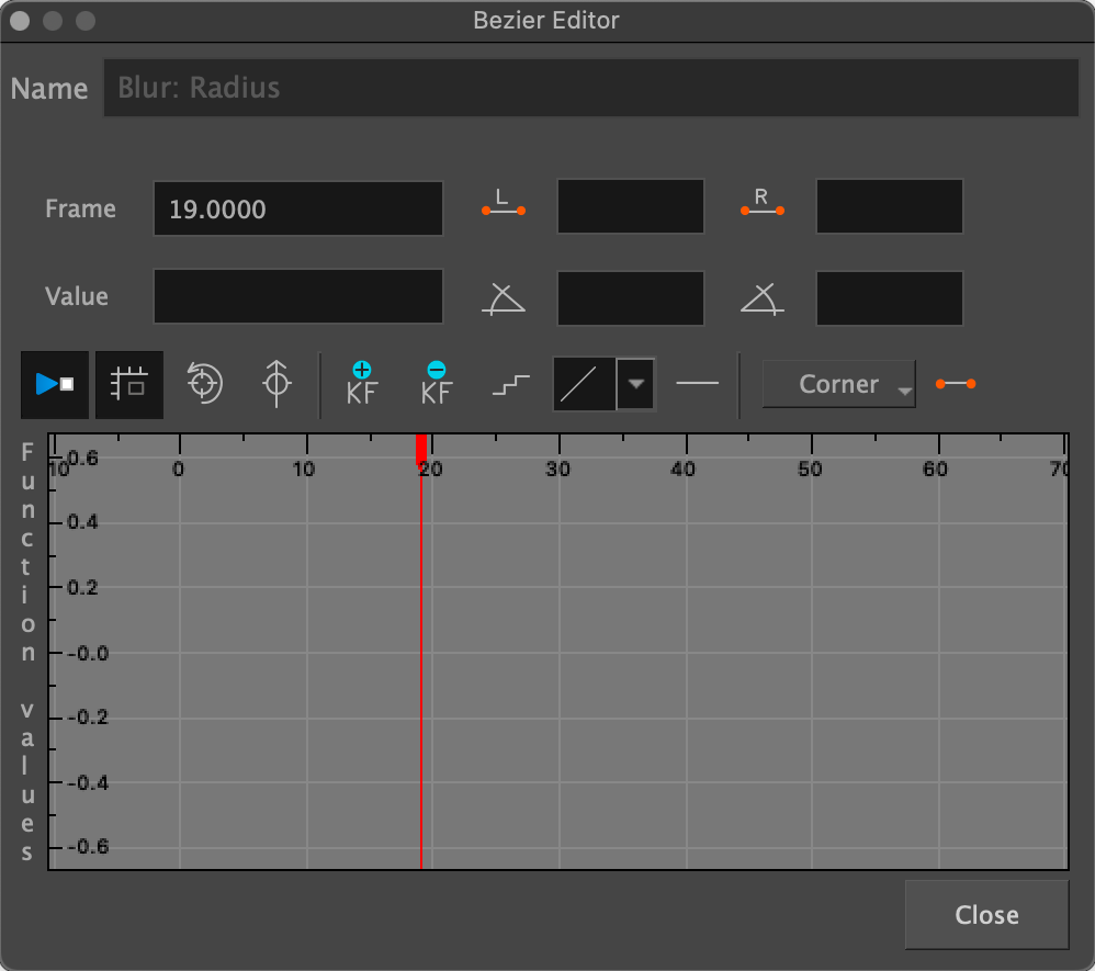 If you want a more focused, detailed approach for animating effect values, you can use the Bezier Editor. Creating keyframes and interpolations in the Bezier Editor will also create them in the timeline and vice versa.