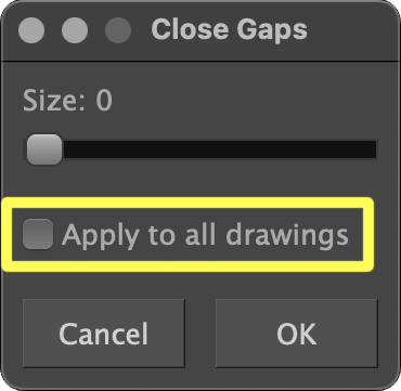 This option is useful for closing off a multitude of gaps, however it can sometimes close off areas that do not need to be closed. It is best used across multiple drawings and frames.