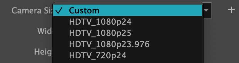 | TIP: If there is a preset that is already close to your custom resolution, choose it from the Camera Size dropdown before opening the New Resolution window. This will automatically fill the fields with that preset’s settings. |