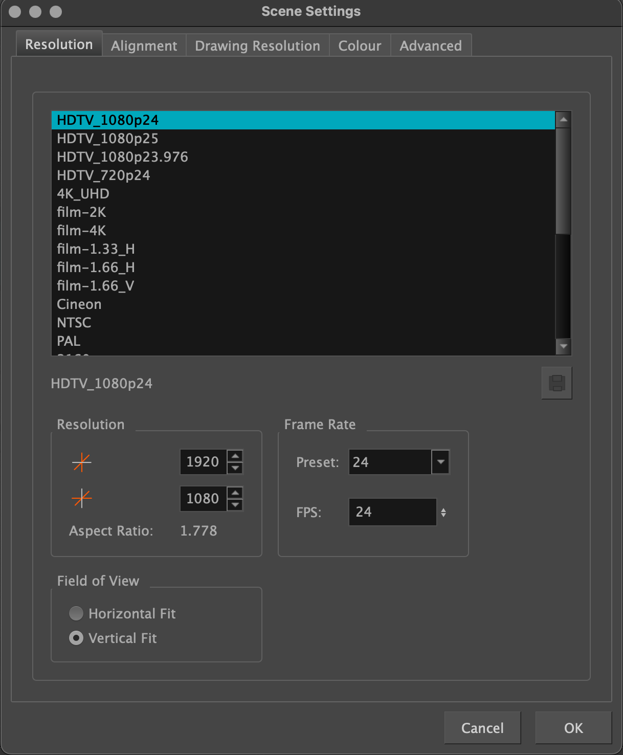 Harmony offers multiple options for scene resolutions, however sometimes you may need something a little more bespoke for your project. This article will show you how to create custom camera resolutions for specific scenes.