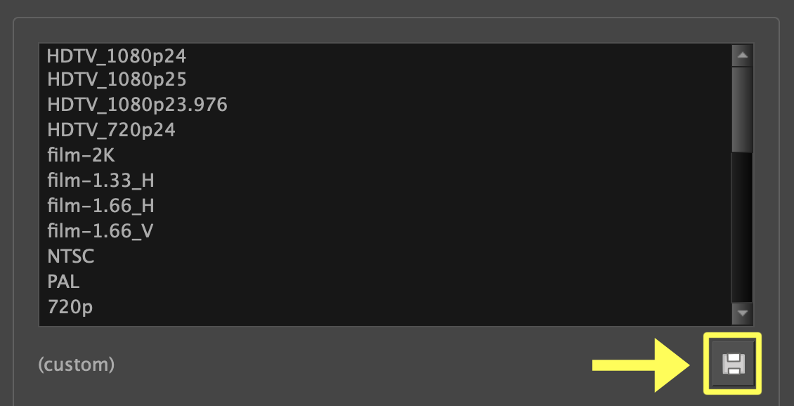 - If you want to delete a custom preset, simply select it from the Camera Size dropdown and press the Remove
