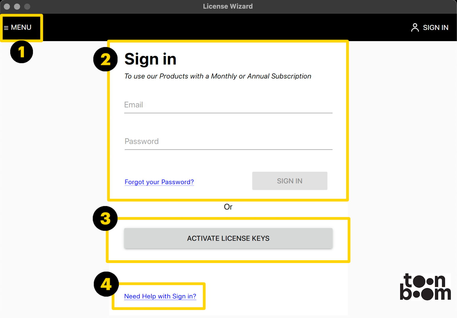 Toon Boom software from version 25.1 and above will now have the License Wizard 2.0.