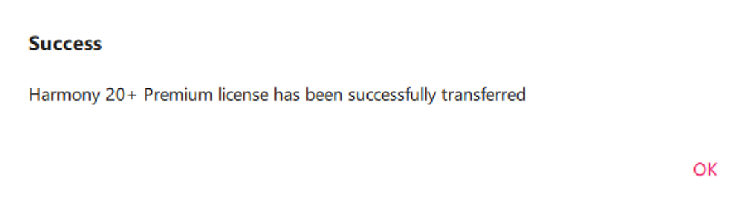 Unlike the Return option, transferring is a single step process as the license does not need to be sent back to the server for it to be transferred.
