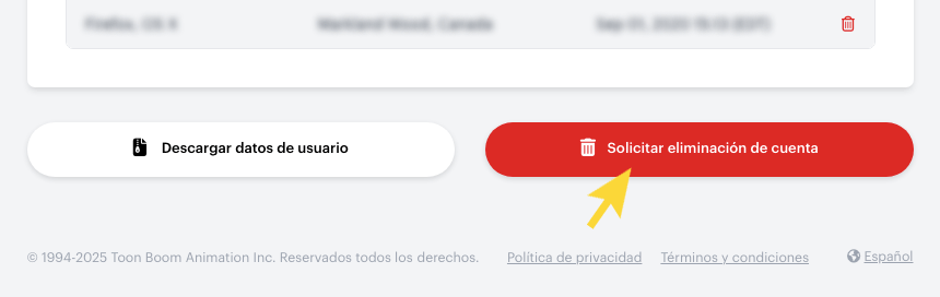 Puede eliminar su cuenta de Toon Boom en cualquier momento. Ten en cuenta lo siguiente antes de proceder: