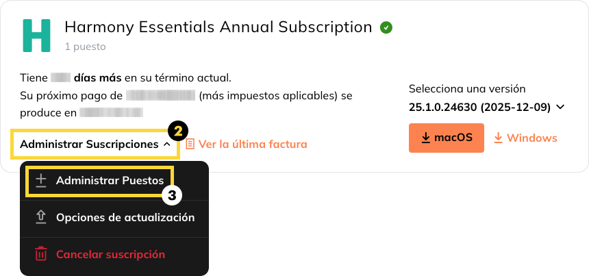 Siga estos pasos para aumentar o reducir fácilmente el número de plazas de su suscripción: