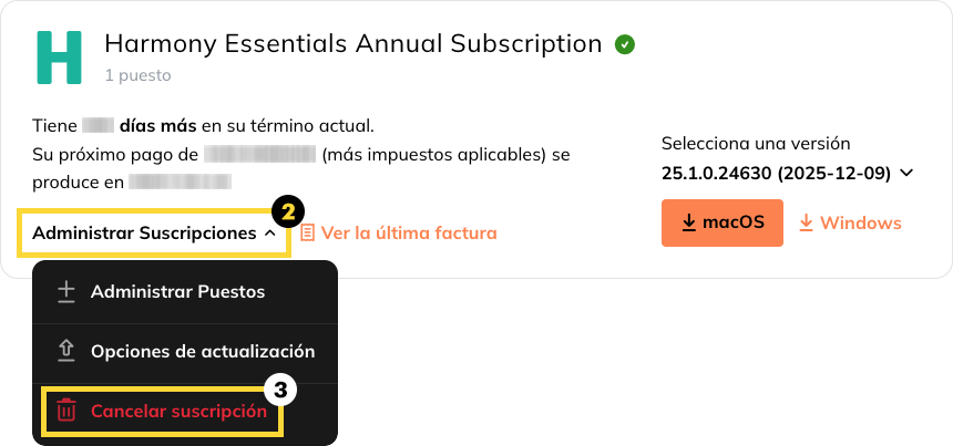| NOTA: Una vez cancelada, tu(s) licencia(s) permanecerá(n) activa(s) hasta que finalice tu periodo de facturación actual. |