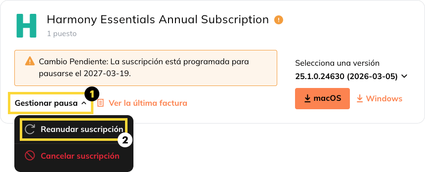 - Una suscripción pausada puede reanudarse en cualquier momento.