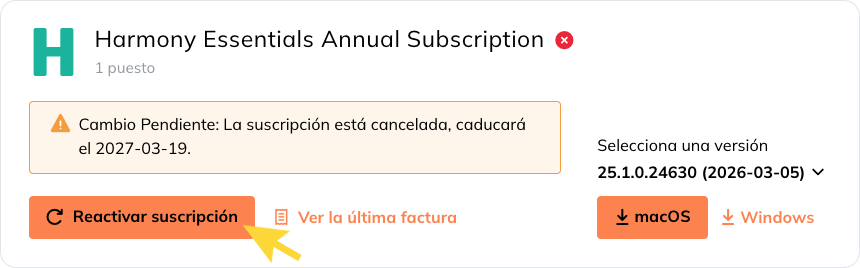 Reactivar una suscripción cancelada