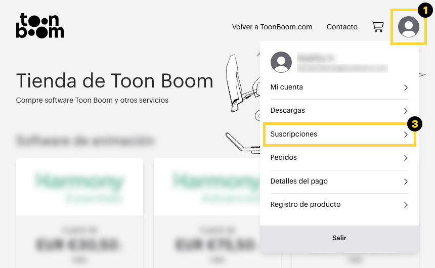 Paso 1: Accede a su cuenta Toon Boom en la página de la tienda
