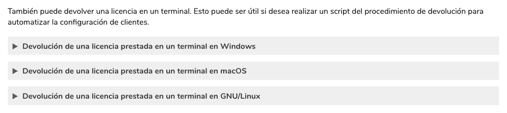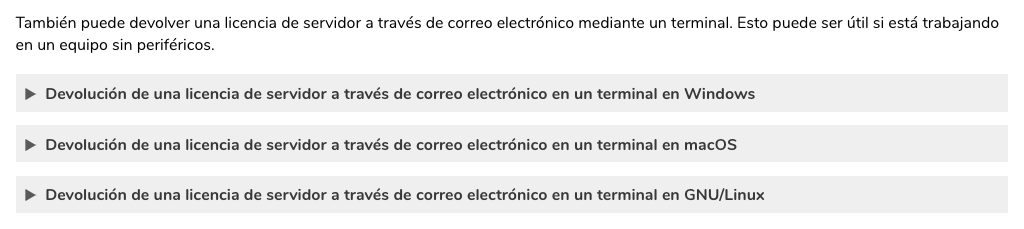 ¿Cómo pido prestada o devolver una licencia de red/flotante/servidor prestada por correo electrónico en un terminal?