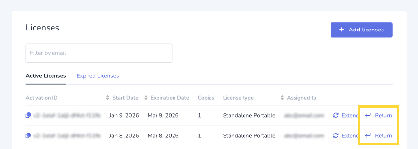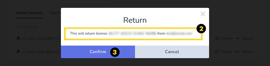 Siga estos pasos para devolver una licencia.