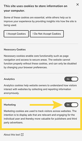 - Localize la sección Marketing y asegúrese de cambiarlos a ON.