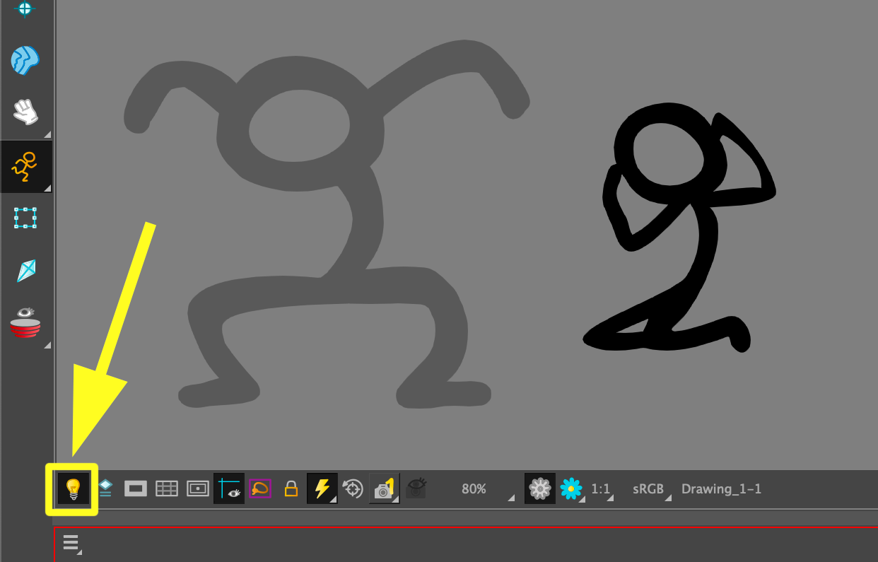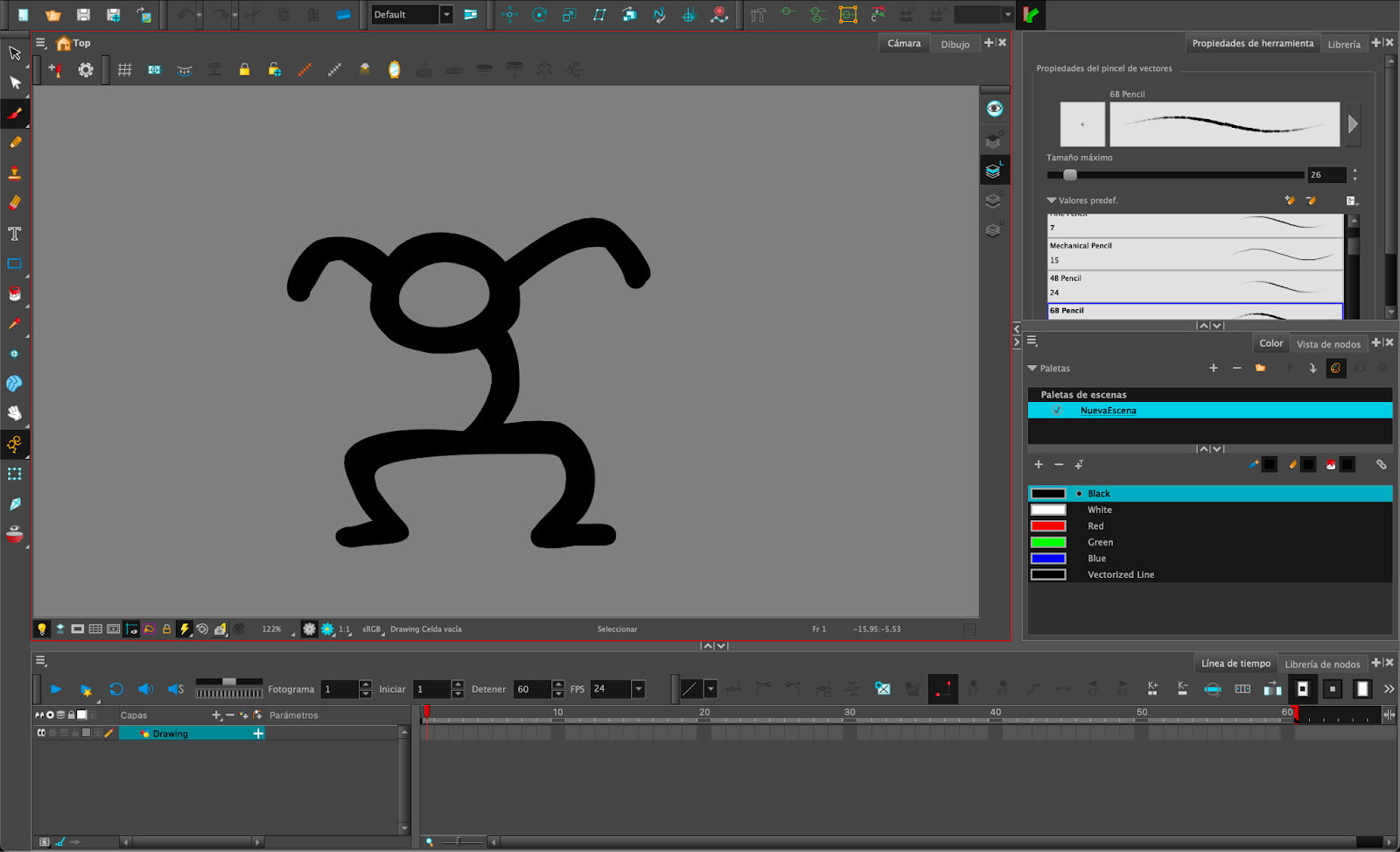 - En la vista Línea de tiempo (1), seleccione la capa Dibujo predeterminada.