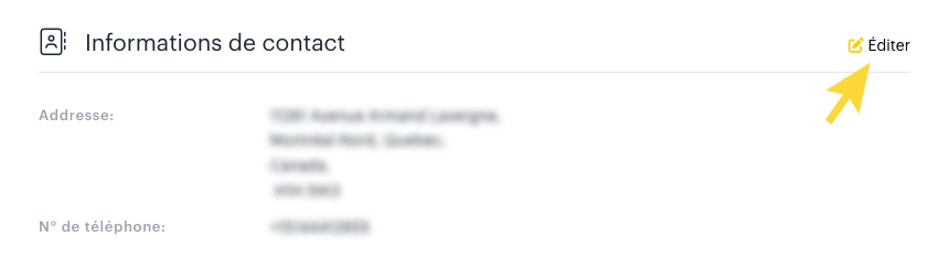 - Dans le coin supérieur droit du panneau Informations de contact, cliquez sur Éditer.