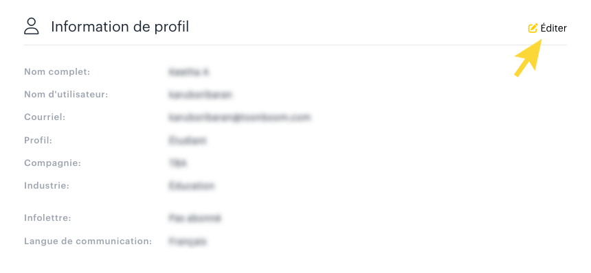 - Dans le coin supérieur droit du panneau Information de profil, cliquez sur Éditer.