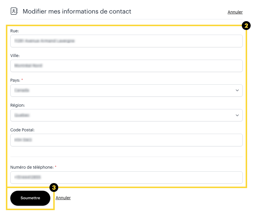 - Vérifiez votre Adresse et Numéro de téléphone et mettez-les à jour en conséquence.