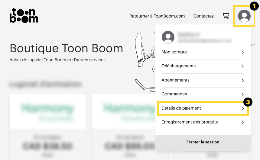 Il est essentiel de maintenir vos informations de paiement à jour pour garantir un accès ininterrompu à vos services Toon Boom et éviter toute interruption de la facturation.