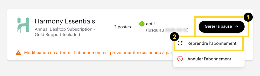 Reprendre un abonnement en pause