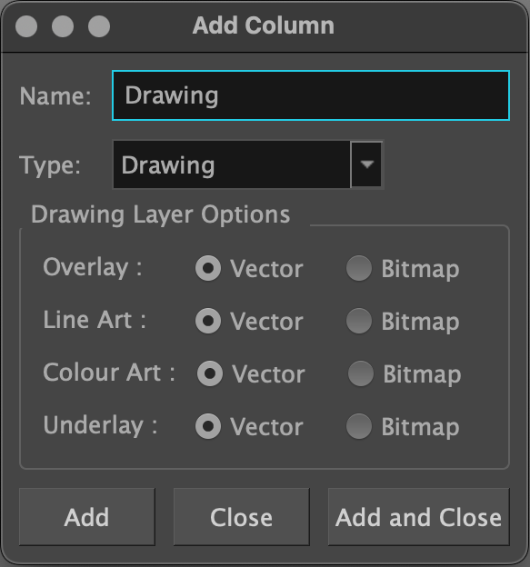 - Dans la barre d’outils de la vue «Xsheet», cliquez le bouton «Add Columns»