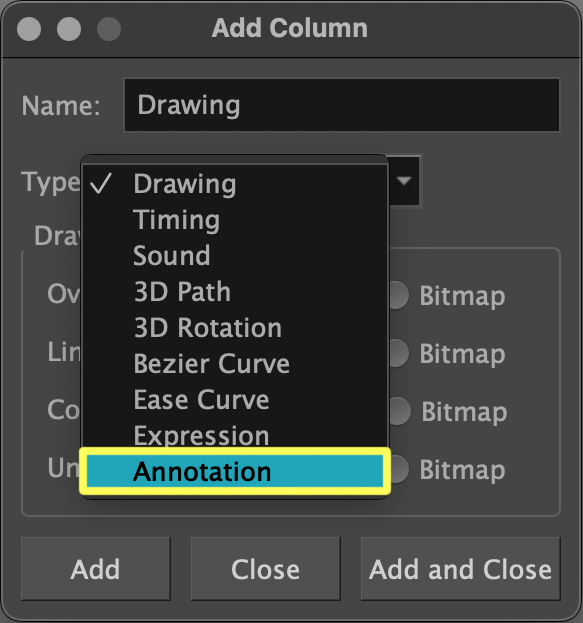 - Une nouvelle colonne «Annotation» apparaîtra dans votre fenêtre «Xsheet view»: