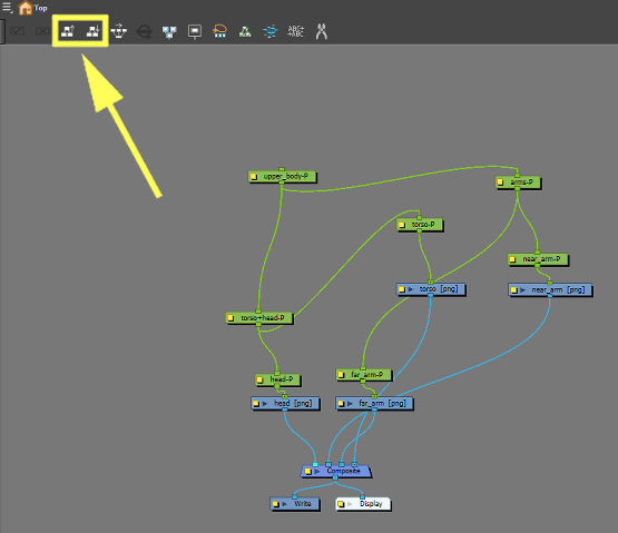- Dans la barre d’outils de la fenêtre «Node view», appuyez sur le boutton «Order Node View Up»